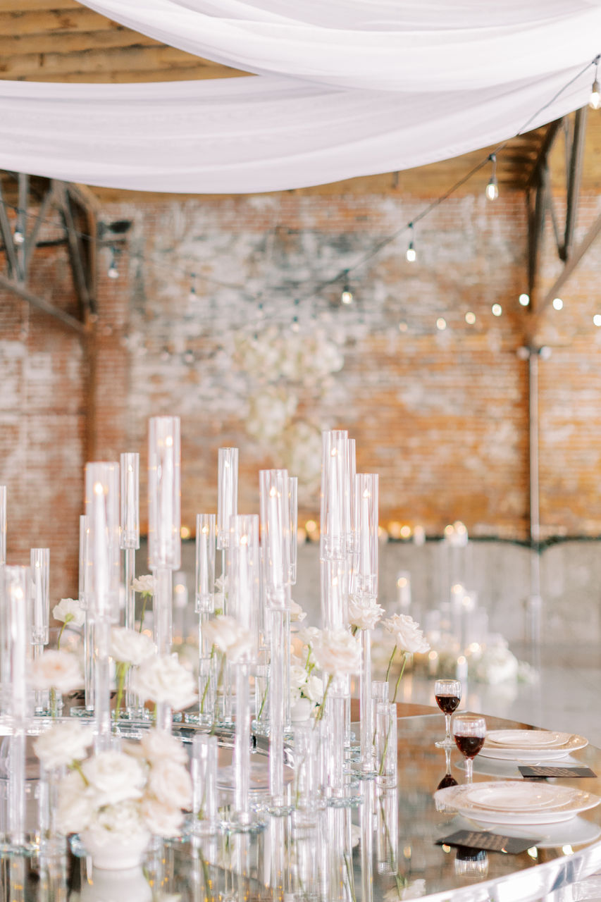 From the first toast to the last bite, your tabletop sets the tone. Our curated collection of chargers, flatware, glassware, and crystal cendelarabras brings depth, texture, and a touch of luxury to every place setting. Whether your vibe is modern and minimal or romantic and refined, these pieces are designed to complement your vision and photograph beautifully.